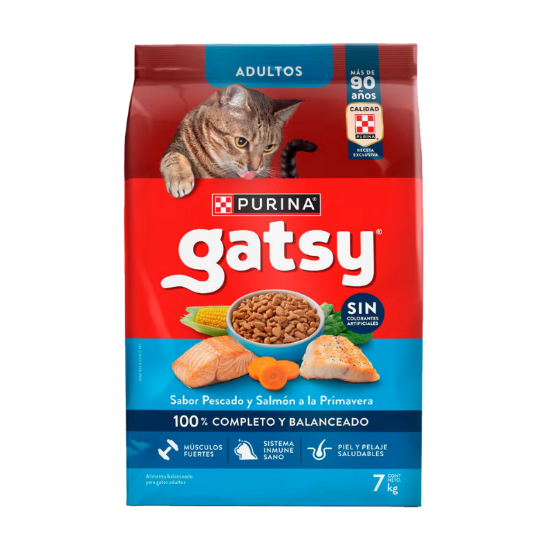 PURINA® GATSY® te ofrece un alimento sabroso, completo y balanceado, con el más delicioso sabor de hogar. Dale a tu gatito, todos los nutrientes de la carne y el pescado, mezclado con cereales y vegetales para que se alimente con el sabor de las más exquisitas recetas caseras.