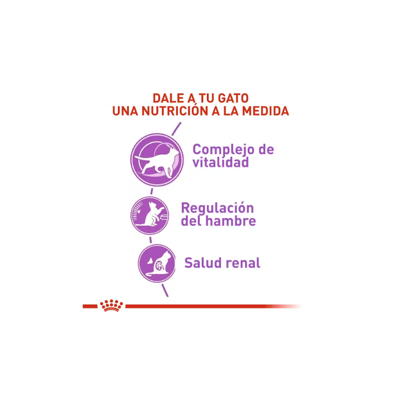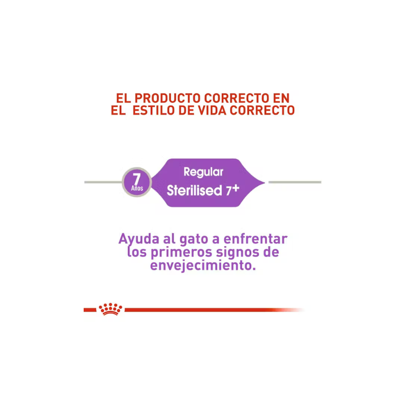Después de la esterilización y con el paso de los años, los gatos tienden a aumentar de peso y pueden presentar cambios en su metabolismo. Por eso, este alimento está diseñado para ayudar a controlar el peso, cuidar la salud urinaria y promover un envejecimiento saludable.